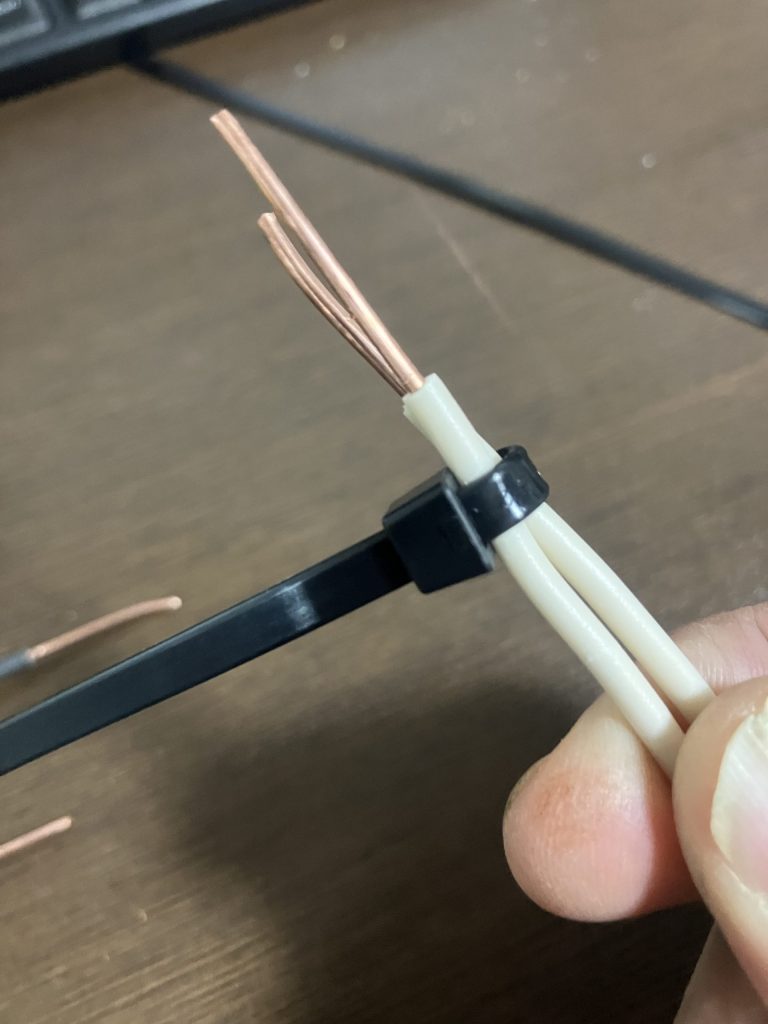 インシュロックを使って芯線を固定する