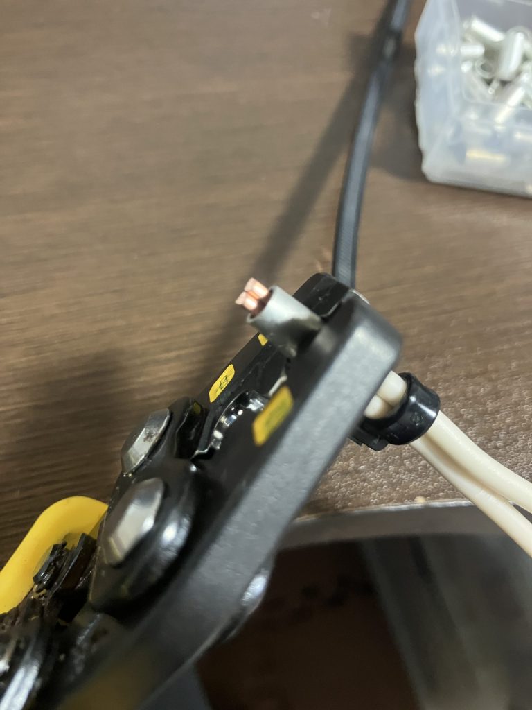 圧着の前に、結線するケーブルをまとめてインシュロックでぎゅっと固定します。