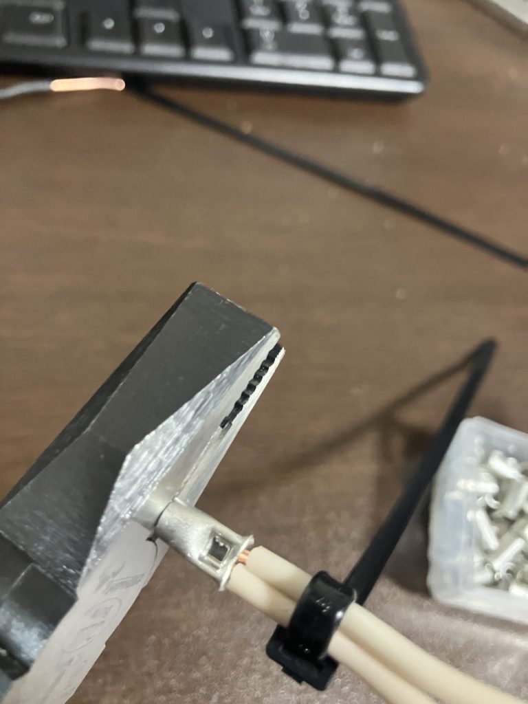 圧着を間違えると、やり直しに2分ほどかかることもあります。本番の40分という制限の中で、2分のロスは痛い。だからこそ、最初は丁寧に正確にやる練習を積んで、スピードは後からついてくるものとして考えた方がいいです。